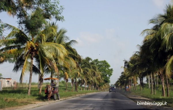 Il viaggio a 50km orari o poco più, per questa Cuba centrale, senza fretta e rigido itinerario, col naso sempre fuori dal finestrino, attraverso paesi, volti e diverse realtà ci piace sempre più. Viaggiamo con tutto il necessario, ad ogni modo, ogni piccolo centro ci offre uno, tre, cinque carretti specializzati ora in caffè, ora in freschi succhi di frutta, ora in piccoli e semplici snack che aiutano ad affrontare meglio le diverse ore trascorse in macchina.