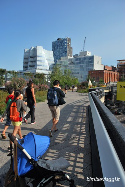 Arrivare così presto ci permette di condividerla con i newyorkesi, che fanno jogging o camminano in tenuta da ufficio con il caffè in mano. La percorriamo tutta, intanto il cucciolo si fa un bel pisolo. Il tempo è spettacolare e fa già caldo al mattino.