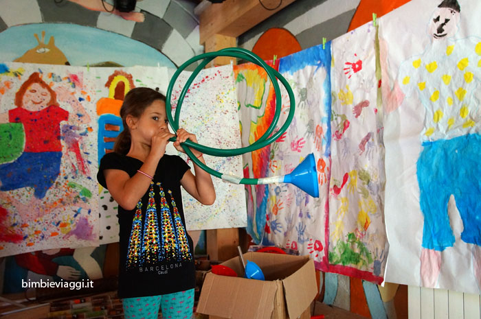 Ad Alcatraz ho incontrato tante mamme single (perché separate o perché semplicemente il marito non poteva partecipare, come nel mio caso), in vacanza coi loro figli, alla ricerca di un’occasione per trascorrere con loro tempo di qualità. Ho incontrato famiglie con bambini appassionati di musica e di arte che, seppur piccoli, hanno dimostrato di saper suonare la tromba o recitare come veri professionisti. Ho incontrato mamme in carriera che trovano nelle discipline divulgate da Jacopo Fo uno strumento per dare sfogo alle proprie qualità e tirare fuori la propria energia nascosta, e che quindi sono venute qui con la famiglia per proseguire il cammino assieme ai loro figli. Ho trovato anche qualche papà eh, ma erano in minoranza. E ho incontrato anche alcune persone che già conoscono e leggono Bimbieviaggi (sempre una grande gioia per me!)