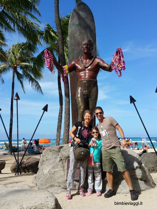 E’ qui che si trova la statua di Duke Kahanamoku, il surfista idolatrato dalla popolazione locale e dai surfisti di tutto il mondo. Alle sue spalle, la spiaggia di Waikiki, che accoglie tutti indiscriminatamente, giovani o anziani, single o famiglie con bambini, senza fissa dimora che chiedono l’elemosina e ricconi che vengono qui per rilassarsi o per surfare sulle onde, magari in compagnia del proprio cagnolino, turisti e bambini del posto, per i quali questo mare rappresenta il miglior playground possibile.