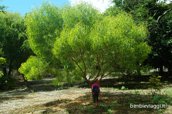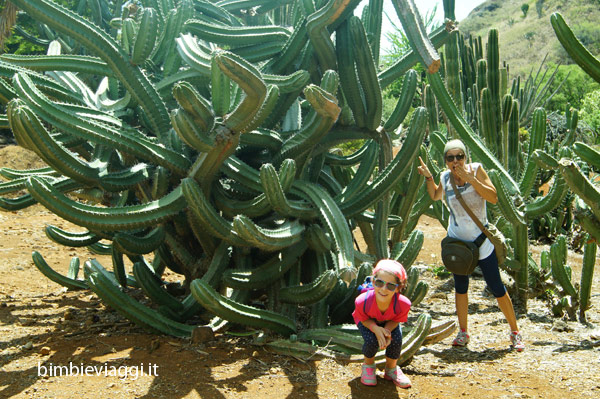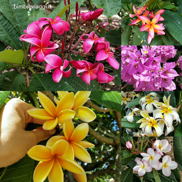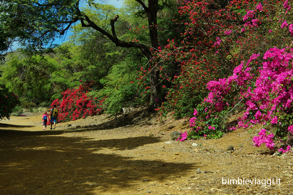 All’interno del giardino si percorre un itinerario ad anello, lungo il quale sono presenti piante provenienti da tutto il mondo: un tripudio di plumerie (frangipane), bouganville, ibiscus, palme, immensi cactus e tanto altro, suddivise per zona geografica. Tu passeggi sul pavimento del cratere, sullo sfondo le pareti del vulcano e tutto intorno tantissime piante colorate, con i cartelli esplicativi.