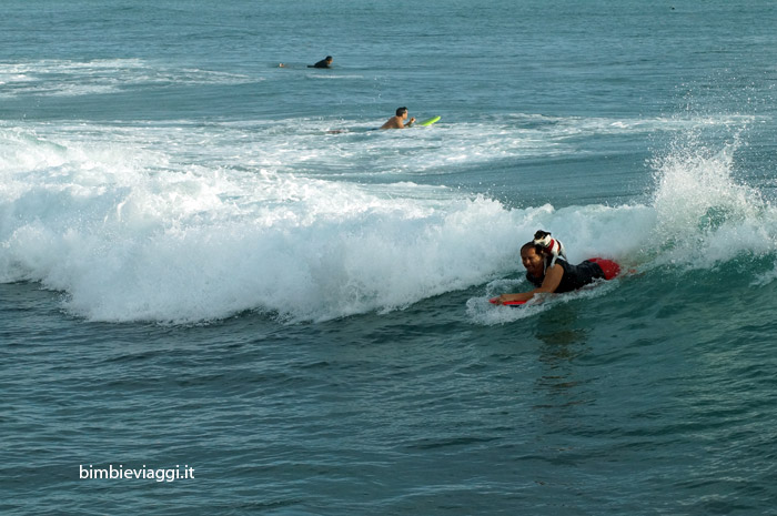 Il mio consiglio è quello di rimanere dalle parti della statua di Duke, sia perché in zona ci sono diversi localini e negozietti, sia perché poco più avanti, c’è Kuhio Beach, un tratto di mare riparato da una barriera di grandi sassi, dove l’acqua è quindi calma e limpida, perfetta anche per i bambini più piccoli. Oltre i sassi, surfisti di ogni età si dedicano allo sport nazionale e vale la pena trascorrere un po’ di tempo sul pontile per ammirarli all’opera.