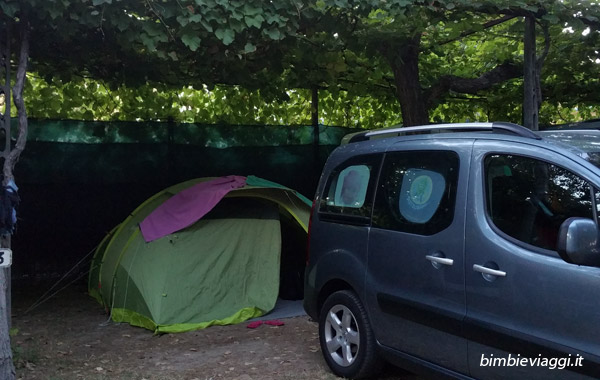 Il campeggio è piccolo e molto ombreggiato, adatto sia per camper che per tende.