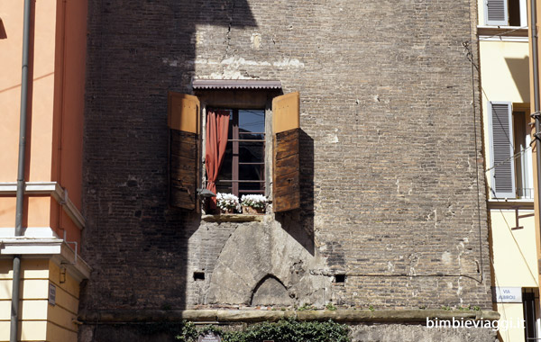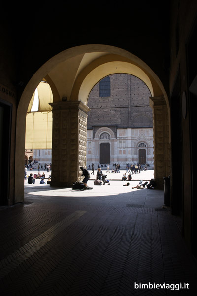 …altre più piccole che restano di fatto nascoste dentro ad edifici, altre senza base, come la Torre dell’Arengo, sotto la quale il Voltone del Podestà regala il famoso effetto acustico per cui ci si può parlare da un lato all’altro del portico bisbigliando…