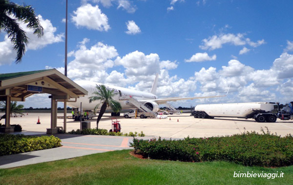 Con un supplemento si possono acquistare i posti più comodi, davanti o nelle uscite di emergenza, che permettono di stendere un po’ di più le gambe, ma non è consentito l’acquisto per i bambini sotto i 12 anni.. Comodissima la possibilità di scegliere il posto e fare il check in online, che ci ha permesso di saltare la lunga fila dei turisti che partivano col tour operator.
