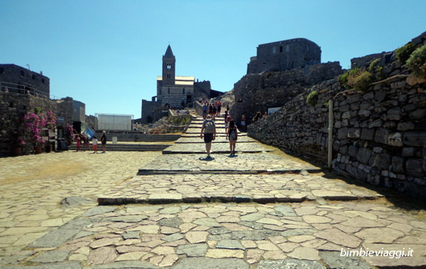 Arrivare via mare a Portovenere è un incanto: sul fondo si vede subito la chiesa, poi avvicinandosi si comincia a vedere la sequenza di case-torri allineate, dalle facciate di tanti colori, con dietro il castello e poi, man mano che ci si avvicina, si vede la strada che prosegue e che va salendo fino all’estremità del promontorio, dove si erge appunto, su uno sperone di roccia, la chiesa di San Pietro.…