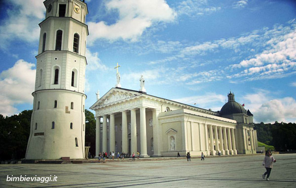 Dal nostro hotel percorriamo le strade che si inoltrano nel centro, passando davanti al palazzo del presidente della Lituania, all’università e giungendo nella meravigliosa piazza della Cattedrale: bellissima, ampia, luminosa! Forse sembra “finta” tanto la facciata della cattedrale è “perfetta”, ma la visione d’insieme è sensazionale! Entriamo nella torre del campanile, ma decidiamo di non salire sopra, ed entriamo direttamente nella cattedrale: all’interno, nulla di che.