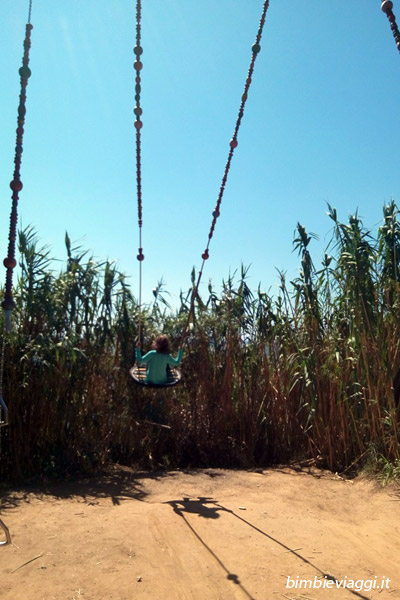 Pessima idea, se non si è allenatissimi… la strada sterrata è piena di sassi e percorsa da parecchie macchine per cui abbandoniamo legata ad un albero la biciclettina di Irene e proseguiamo sotto il sole fino al bar Safari.
