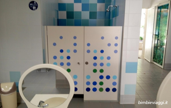 La cosa che più entusiasma Irene del camping Lanterna non è l’acquapark, non sono le spiagge o il mare, o il miniclub, non sono i giochini tipo lunapark o gli enormi gonfiabili in mare, ma i bagni con doccia esclusivamente riservati ai bimbi 2-10 anni, dove tutto è a misura ed altezza di bimbo!