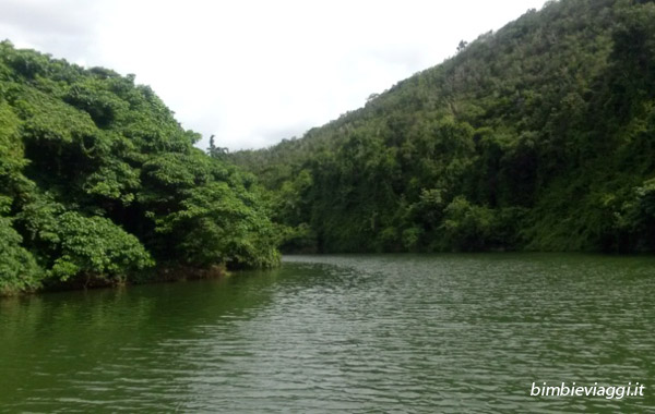 Il letto è circondato da uno spettacolare canyon ricoperto da una selva tropicale ricchissima e verde intenso..