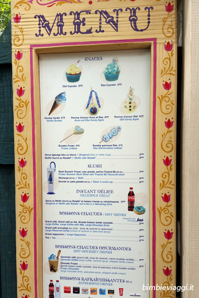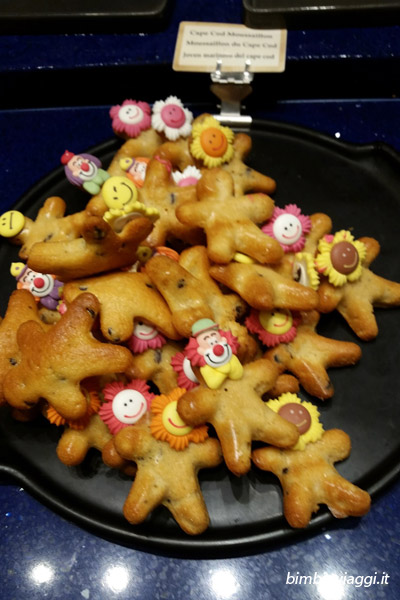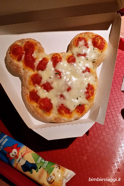 Per le merende non mancavano pizzette a forma di topolino, gelati, muffin, ciambelle e snack kinder (questi ultimi li trovate in vendita nelle boutique a prezzi abbastanza elevati).