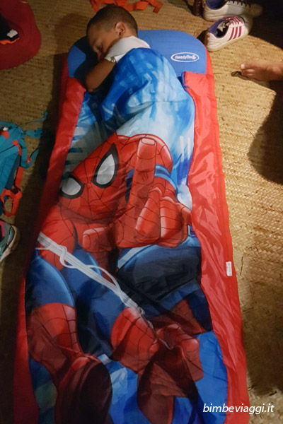 E’ adatto infatti a far dormire anche bambini ancora abituati al lettino con le sbarre, in quanto chiudendosi come un sacco a pelo, anche il bambino più irruento non esce e comunque se esce beh… non si fa nulla perchè dorme già a livello terra, quindi mica si fa male. 🙂