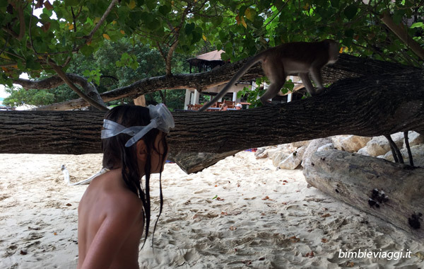 Tornando alle scimmie, sono uno spettacolo avvincente per i bambini: verso sera scendono dagli alberi in cerca di cibo, le puoi trovare a rovistare nel pattume o addirittura nello zaino, come è capitato a noi. I bambini possono passare ore ad osservare le scimmie ed interagire con loro. A differenza di altri posti, queste non sono aggressive, sono abituate agli uomini. Provate a dare a vostro figlio una bananina da donare alla scimmia: sarà più che soddisfatto nel vedere come se la mangia e con che cura e delicatezza la sbuccia.