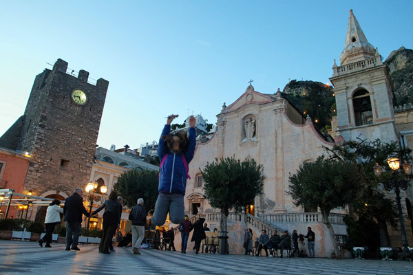 L’apice della bellezza -tolto l’antico teatro greco- si raggiunge ovviamente nella piazza del Duomo: una bella terrazza che si affaccia sul mare, con l’Etna fumante sullo sfondo e, alle spalle, il Duomo e un paesaggio decisamente da cartolina.