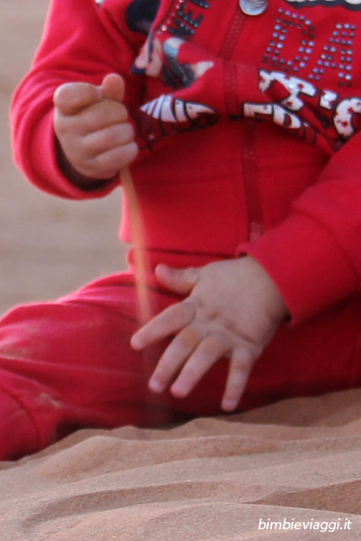 Eravamo già stati nel deserto in Oman col pancione di 7 mesi ma questa volta l’emozione è maggiore. E’ fondamentale coprirsi bene dal sole: crema solare protezione totale, cappellino e occhiali da sole. Il nostro accampamento non è distante ma sulla gobba dei cammelli il cammino dura circa 1 ora tra sali e scendi e paesaggi indimenticabili. Arriviamo in tempo per un tè e saliamo sulle dune intorno ad ammirare il tramonto: uno spettacolo davvero unico.