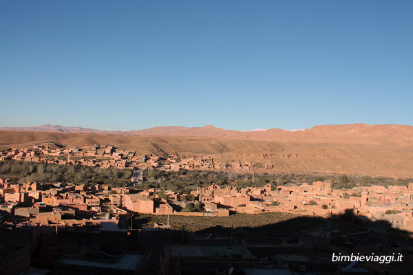 Proseguiamo verso Ourzazate, attraversiamo la colorata Valle delle Rose e i tanti villaggi berberi per arrivare al nostro albergo nella valle del Dades che ci accoglie con la sua vista spettacolare. La giornata è stata lunga e stancante, Martina ha dormito tanto in macchina e guardato il paesaggio ma fortunatamente crolla a letto.