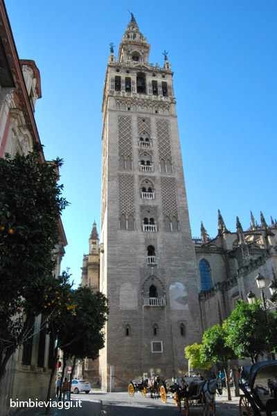 Il primo giorno, dopo una buona colazione in hotel, abbiamo iniziato a girovagare per le viuzze del centro storico… siamo arrivati nella piazza dove si trova la Cattedrale di Siviglia e la Giralda (la torre della cattedrale, mio marito è salito e mi ha confermato il bellissimo panorama).