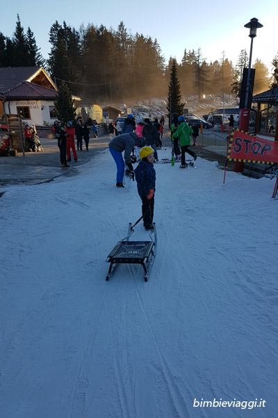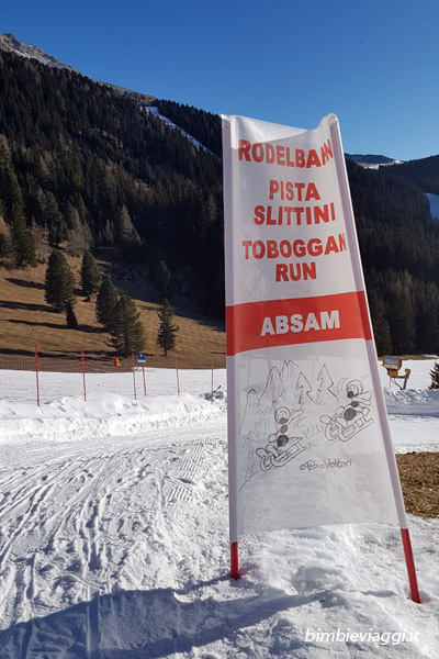 La pista di slittino è qua molto bella e lunga, ma anche insidiosa (infatti, come per lo sci, è obbligatorio il casco fino ai 14 anni!). Da soli si può fare tranquillamente dagli 8-9 anni, prima consiglio vivamente di accompagnare il bambino, ma non temete…voi vi divertirete se possibile come e più di lui perché le discese a due sono divertentissime! Per quello si può fare il giornaliero, che non è a buon mercato ma costa molto meno di quello per lo sci, in quanto la risalita avviene tramite la cabinovia.