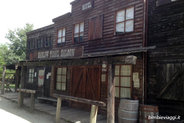 Costeggiando il recinto dei grandi bisonti arriviamo alla suggestiva COW TOWN, la riproduzione ben fatta di una cittadina western. Qui di fatto non c’è niente, ma è un bello sfondo per fare qualche foto davanti al saloon o alla casa dello sceriffo.