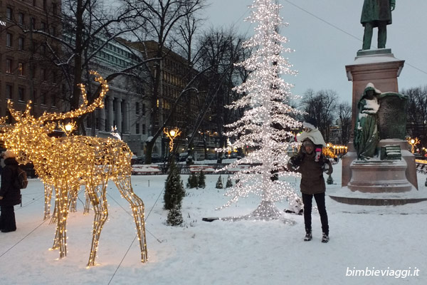 Percorriamo quindi la via centrale e costeggiamo il parco Esplanadi, e ci accorgiamo subito di quanto questa città sia diversa da Tallin: quest’ultima, piccola, carina, negozietti tipici, la definirei più un grande paese che una piccola capitale; Helsinki invece, più “moderna”, con ampi vialoni di negozi, centri commerciali… Raggiungiamo la zona dei mercatini, in market Square, sul mare che è ghiacciato, ma che è davvero un bellissimo spettacolo!