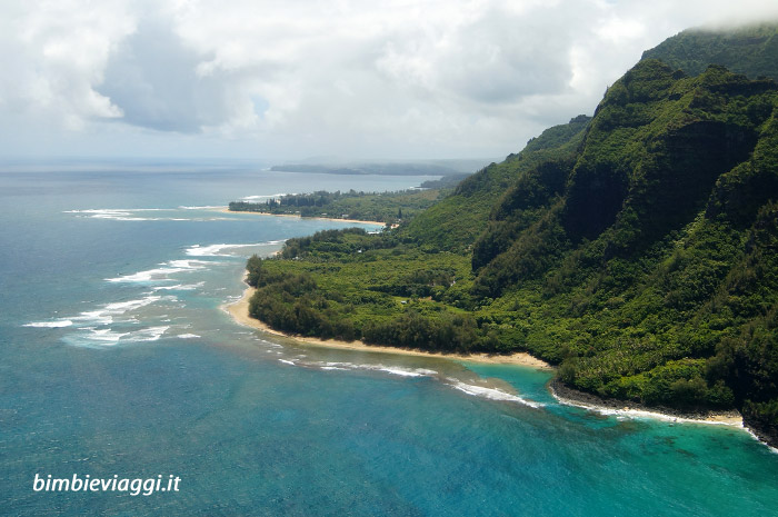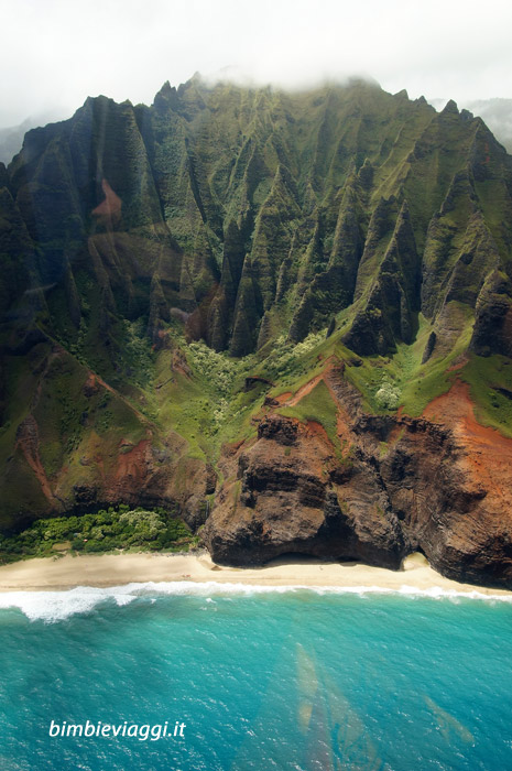 Ecco qui, spiegato in poche parole, perchè questa escursione va fatta: perchè vedere la Polinesia dall’altro offre una visione d’insieme unica su queste gocce di terra che sembrano scolpite da un artista, perché da lassù riesci a cogliere il potere della natura in tutte le sue manifestazioni, perché solo da lassù capisci cosa intendesse dire Iz nelle sue canzoni. Grazie alla nuvoletta che circonda sempre le vette alle spalle della Na Pali Coast (in particolare il Monte Waialeale, uno dei punti più piovosi al mondo), è facile infatti che nascano meravigliosi arcobaleni; e l’elicottero ti consente di passarci sopra!
