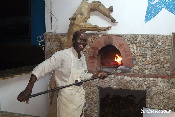 Purtroppo all’epoca del nostro viaggio Marina e Carlos si trovavano in Italia, ma sul posto abbiamo trovato tante persone squisite: Abel, il cuoco tuttofare di Marina, che gestisce la casa e cucina divinamente. Ha anche un forno a legna dove cuoce personalmente la pizza. Lo so, siamo in Kenya, ma quando si viaggia con dei bambini a volte il compromesso è d’obbligo! E la cucina di Abel, con piatti kenioti e italiani, era un’ottima soluzione tanto che abbiamo sempre mangiato qui.