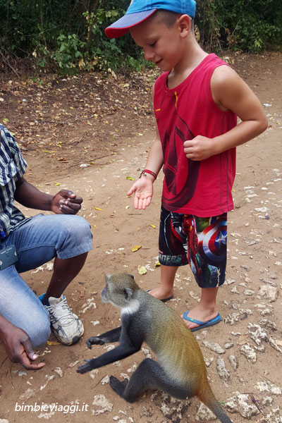 Lo stesso dicasi per la città araba abbandonata di Gede: le rovine di questa città, abbandonata nel quindicesimo secolo per motivi ancora ignoti, sono a mezz’ora di strada da Watamu e valgono una visita, perché sono davvero affascinanti. I bambini poi apprezzeranno la visita, se non per il lato storico, perché Gede è la città delle scimmie: portate con voi delle banane (ve lo consiglierà anche il vostro autista) e cercate di convincere i bambini meno paurosi a dargli da mangiare…Alex non ne ha voluto sapere di farsele salire addosso! 🙂