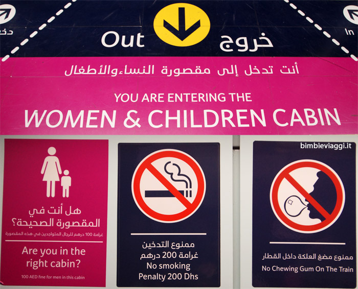 Una particolarità: all’interno della metro, ci sono aree riservate a donne e bambini: gli uomini, di fatto, si trovano dentro allo stesso scompartimento, ma devono stare oltre una riga tracciata a terra, pena la multa.