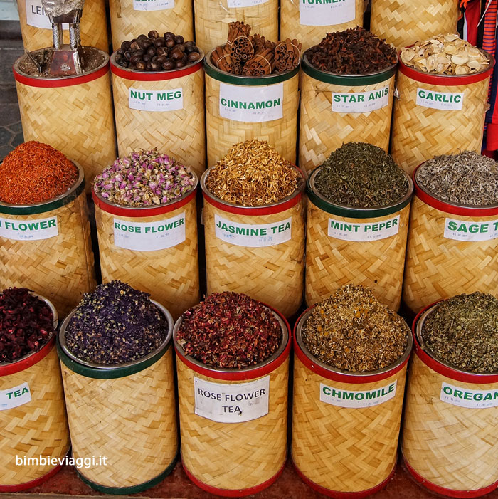 Anche il souq delle spezie è molto suggestivo: tra banchetti e negozi, abbiamo visto, toccato e annusato una quantità infinita di spezie e ci siamo lasciati incantare dai negozianti, che facevano a gara per farci indovinare cosa fossero le sostanze esposte sui loro banchi.