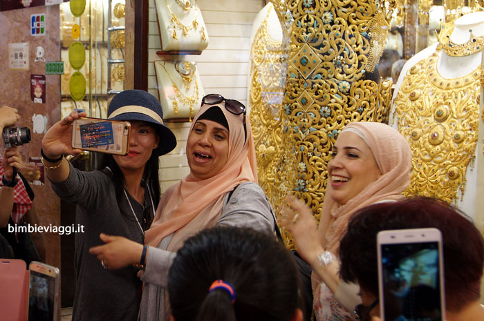 Il brulicare di turisti in questa zona ci ha dato l’impressione di rivivere lo spirito dei commercianti che si recavano qui nel secolo scorso: l’insegna all’ingresso del mercato recita “Dubai City of Gold”, perché questo è sempre stato uno dei principali centri mondiali per il commercio dell’oro.
