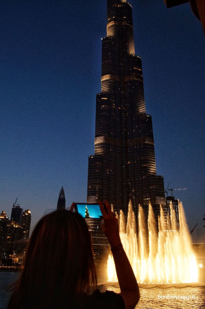 Esistono diverse tipologie di biglietti per la salita sul Burj Khalifa: il biglietto base (piani 124 e 125) negli orari più economici, costa circa 32 euro gli adulti e 25 i bambini. Il costo aumenta nelle ore del tramonto, quando si può vivere l’esperienza di vedere il sole che si tuffa in mare, o le fontani danzanti dall’alto. Noi la prima volta abbiamo scelto il tramonto dalla cima ed è stato bellissimo. Ma anche stavolta, che invece il tramonto lo abbiamo vissuto dal basso, ammirando il Burj Khalifa con davanti le fontane danzanti, posso dire che entrambi gli spettacoli meritano!