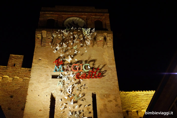 Abbiamo subito fatto un giro per la stradina acciottolata che, dalla porta sotto la torre dell’orologio, conduce fino alla Rocca, con il cielo ancora addobbato da stormi di farfalle… ci siamo incantati di fronte ai mille angoli ancora decorati per via dell’evento “The Magic Castle” (concluso, purtroppo, da pochi giorni)… abbiamo acquistato qualche giocattolo in stile medievale (dalle coroncine di fiori per le dame agli archi con frecce per i cavalieri)… abbiamo cenato in una delle numerose osterie presenti dentro le mura, circondati da torri e merli… e soprattutto abbiamo capito che dovevamo tornarci di giorno, perchè le cose da fare erano parecchie!