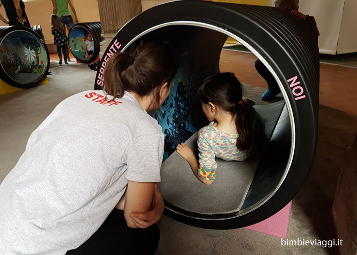 Considerate che l’intero percorso dura 45 minuti e alla fine c’è un fantastico parco in cui scatenarsi o, nel caso di maltempo, una piccola area libera e gratuita con lavagne, piccola libreria, baratto di giochi e tanto altro.