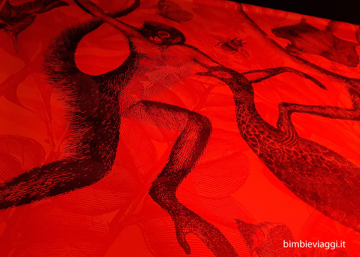 Un gioco di luci, poi, mostra scimmie che si trasformano in tigri e poi ancora in fiori, e grazie a queste piccole magie impariamo che i colori sono capaci di far vedere anche cose che sembrano nascoste. E poi lo sperimentiamo direttamente sui nostri corpi, ma qui vi lascio la sorpresa.