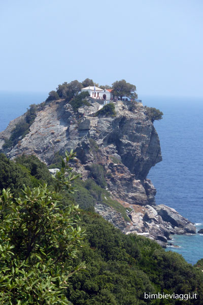 Dimenticavo che Skopelos è l’isola del film “Mamma Mia”; da quello che avevo letto temevo fosse più ossessivo il ricordo continuo al film, poi, arrivati lì, abbiamo visto che non lo è. Tra l’altro, siamo andati a vedere la chiesetta del matrimonio (principale attrazione dell’isola), che è più bella in termini di posizione che in sé (vista da sotto è davvero molto carina e in una posizione stupenda), e soprattutto ha una spiaggetta meravigliosa che si trova proprio sotto la chiesa. Bisogna solo fare attenzione che in agosto arrivano le barche delle gite in giornata che rovinano l’acqua e riempiono la spiaggetta.