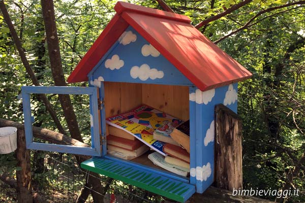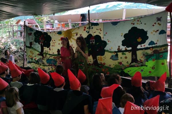 I bambini sono i benvenuti in questo luogo e così anche i genitori. Qui possono trovare un’area per il gioco libero, attrezzata con giochi figurativi in legno (casette, macchinine, labirinto, tunnel, casa sull’albero, dondolo, altalene, scivolo, ponte tibetano… ecc.). C’è addirittura una scuola: la scuola degli gnomi. I bambini che decidono di recarsi qui, devono studiare, conoscere gli gnomi, le fate, le regole del bosco. Devono imparare il rispetto per gli animali, per l’ambiente e proteggere la natura: solo così le fate insegnanti, potranno consegnare loro la medaglia di “guardiano dei boschi”.
