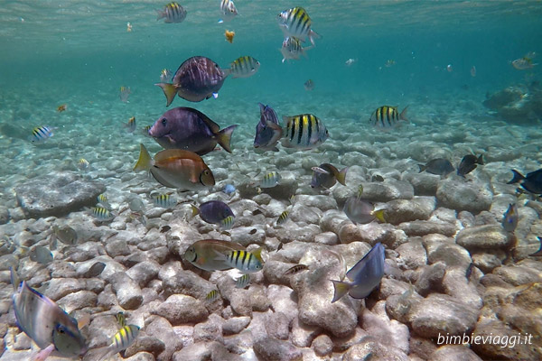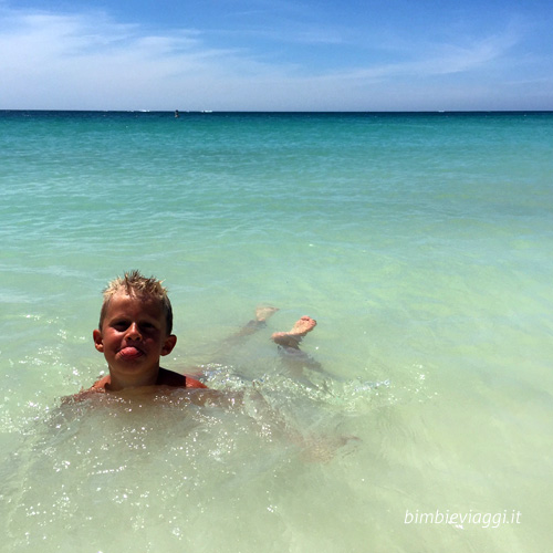 Ammetto che abbiamo vissuto questa vacanza in modo molto easy, non ci siamo preoccupati di cercare attrazioni per il bambino (che nemmeno le richiedeva), non abbiamo comprato una paletta un secchiello, niente di niente… il bello era nuotare in questo mare, caldissimo, assieme ai pesci e facendo tanti tuffi (grazie a papà Patrick che “tirava” Marco in aria); gli unici castelli di sabbia che abbiamo fatto, sono stati quelli costruiti con il contenitore della frutta presa al supermercato.