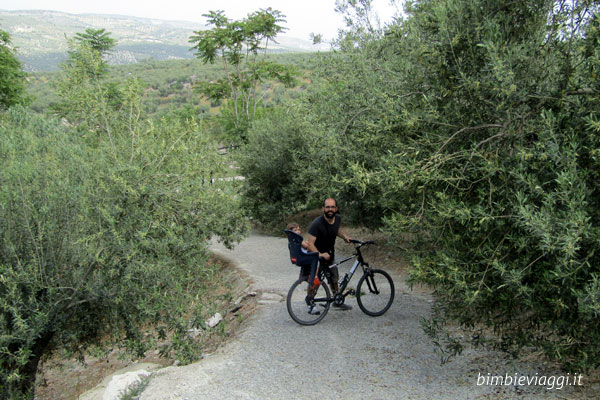 La Subbetica Bike’s Friends di Dona Mencia noleggia biciclette, noi avevamo inviato una mail qualche giorno prima, così al nostro arrivo la bici con il seggiolino era già pronta.