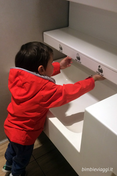 All’interno dei terminal, le toilettes sono dotate di fasciatoio, lavandini e wc per bambini.