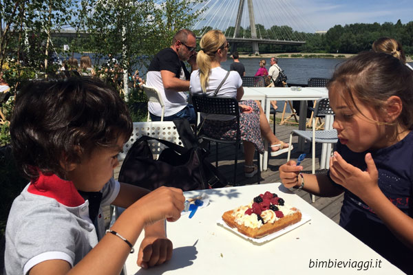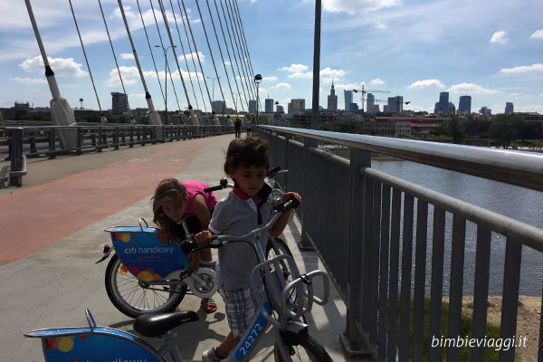 Le bici da bambini ed i tandem non si trovano ovunque, ma è sufficiente scaricare l’app di veturilo per visualizzare la mappa della città con tutti i punti nolo, specificando nella ricerca quelli con bici da bambino o tandem. L’app inoltre permette di visualizzare il numero di bici disponibili per ogni posteggio. Noi ne avevamo uno proprio sotto casa per cui le abbiamo strausate. Ci sono ottime piste ciclabili per tutta la città che portano un po’ ovunque. Una molto bella è quella lungo il Vistola, noi l’abbiamo fatta tutta ed abbiamo anche attraversato il ponte, arrivando fino allo stadio. La città “nuova” ha delle belle piste ciclabili che attraversano anche i più bei parchi.