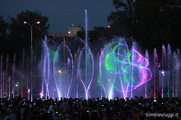 La fontana è bella da ammirare anche di giorno perché si trova in un parco con diversi locali dove potersi rilassare ed un bellissimo parco giochi, per i più piccoli ed i più grandi, dove non possono chiaramente mancare dei giochi d’acqua.
