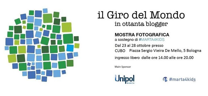 Lunedì 23 ottobre alle ore 18.30, presento Bimbi e Viaggi il Libro in un’occasione molto speciale: l’inaugurazione della mostra “Il giro del mondo in 80 blogger”, dedicata alla raccolta fondi per la Onlus #Marta4kids.