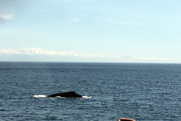 Oggi ci aspetta la gita per vedere le balene. Confrontate alcune proposte online decidiamo per AML croisieres: con 150 euro prenotiamo al telefono perché, rispetto alle informazioni riportate sul loro sito internet, oggi sono cambiati orari e anche tipologia di imbarcazione (il gommone non potevamo farlo perché prendono solo bimbi dai 6 anni).