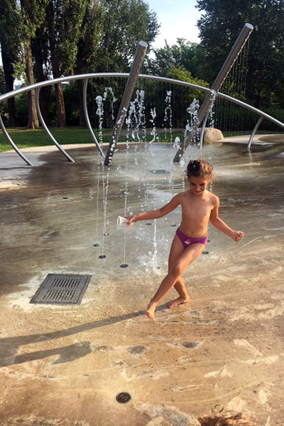 Arriviamo nel pomeriggio, facciamo il check in e poi andiamo subito al parco di fronte a casa dove c’è un playground carino con anche zona acqua: le bimbe si divertono.