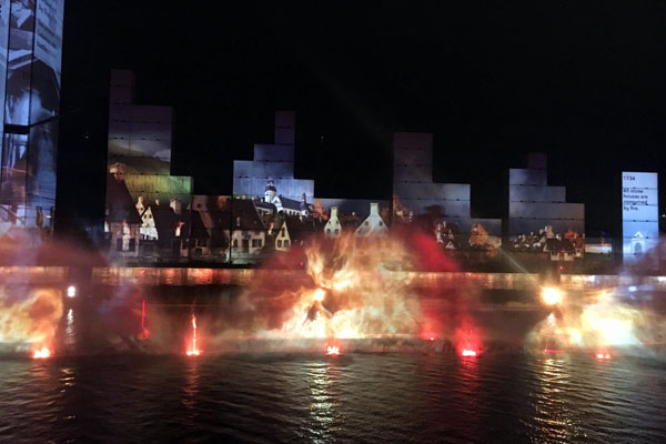 Ci dirigiamo un po’ velocemente in zona porto, perché abbiamo prenotato lo spettacolo gratuito di luci alle 22.30. C’è una fila lunga ma poi quando fanno entrare scorre in poco tempo. Avremmo un posto un po’ troppo laterale quindi decidiamo di stare in piedi ma più centrali. Le bimbe resistono un po’ poi crollano. Spettacolo molto bello sulla storia di Montreal con fontane e immagini proiettate: alle 23 finisce e inizia a piovere. Con le bimbe addormentate prendiamo un taxi.