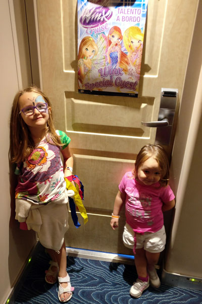 La cabina a noi riservata era una esterna con un bell’oblò al ponte 7 ed è stata una gradita sorpresa essere accolti come Winx Special Guest! La crociera infatti era targata Winx, che sono state le protagoniste della nostra settimana!