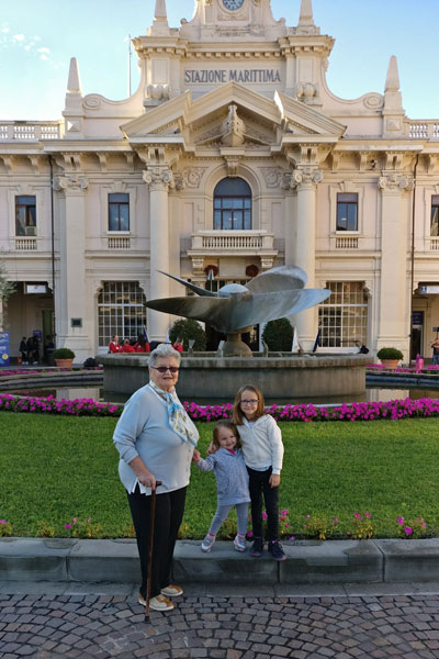 Erika, essendo quasi a termine gravidanza, non ha potuto imbarcarsi, ma in compenso si è immediatamente fatta avanti una volontaria sana, 85 anni e non sentirli, specie se si tratta di prendere una valigia e partire: la nonna Adriana!!!