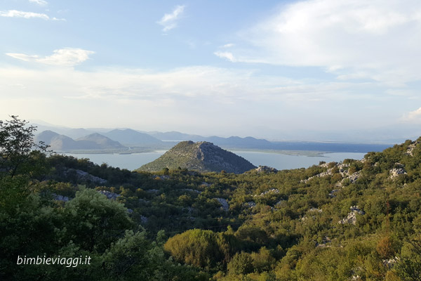 Nel pomeriggio, su suggerimento della ragazza dell’ufficio turistico, siamo andati alla spiaggia sul lago di Donji Murici, poco lontano dal confine con l’Albania. La spiaggia dista pochi kilometri dal paesino di Virpazar, ma la strada per raggiungerla, che passa alta sulla montagna, è ad una sola corsia e piena di curve e si può percorrere poco più che a passo d’uomo, stando pronti a fermarsi ogni volta che si incrocia una macchina, per cui si impiega quasi un’ora a raggiungerla.