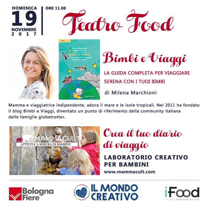 Domenica 19 novembre alle ore 11 Bimbi e Viaggi e Mamma Cult saranno di nuovo insieme per chiacchierare di viaggi e far divertire i bimbi con un laboratorio a tema viaggio. Ci vediamo al Mondo Creativo!