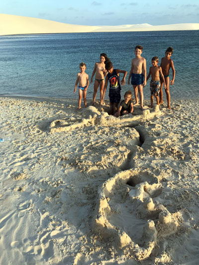 Primo intero giorno nel Parco Nazionale dei Lençóis Maranhenses… STUPENDO! Dune da scalare a perdita d’occhio, intervallate da lagune con acqua limpidissima. Durante la stagione delle piogge tra le dune sabbiose si formano numerosissimi specchi d’acqua dolce che si ritirano via via durante la stagione più secca. I ragazzi hanno fatto infiniti bagni, lanciandosi dall’alto delle dune fino a tuffarsi in acqua. Lo scenario è fantastico.